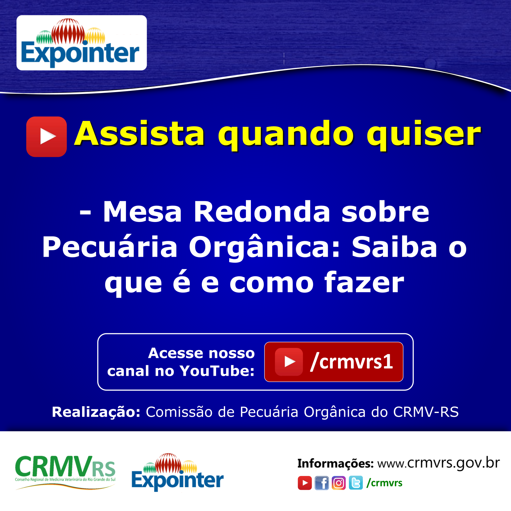 Com duas convidadas para falar sobre pecuária orgânica, o Conselho Regional de Medicina Veterinária do Rio Grande do Sul (CRMV-RS) encerrará sua participação na Expointer Digital 2020 nesta segunda-feira. A partir das 17h30, o evento "Sustentabilidade na Pecuária Orgânica: Desafios e Oportunidades da Produção Orgânica" poderá ser conferido no CANAL 2, em https://www.expointer.rs.gov.br.