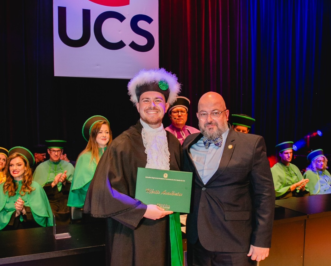 O secretário-geral do Conselho Regional de Medicina Veterinária do Estado Rio Grande do Sul, Henrique Noronha, representou o CRMV-RS na cerimônia de formatura do curso de Medicina Veterinária da Universidade de Caxias do Sul (UCS) que ocorreu no dia 24 de janeiro.