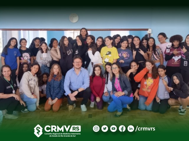 O presidente do Conselho Regional de Medicina Veterinária do Rio Grande do Sul (CRMV-RS), Mauro Moreira, foi o convidado da vez para apresentar as profissões de médico-veterinário e zootecnista. Ele destacou a importância desse diálogo com os jovens que estão prestes a escolher qual caminho seguir. “Esse é um momento decisivo na vida dos estudantes. Levar informações sobre a Medicina Veterinária e suas diversas possibilidades de atuação pode inspirar e ajudar na construção dos sonhos desses jovens”, ressaltou.