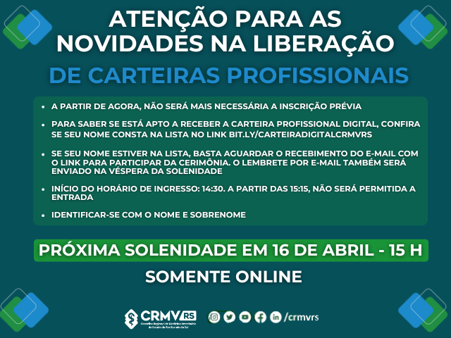 O CRMV-RS implementou melhorias para facilitar o acesso à carteira profissional digital, tornando o processo mais ágil e prático. Agora, não é mais necessária a inscrição prévia! ✅
