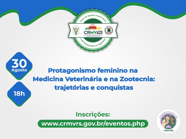 O Conselho Regional de Medicina Veterinária do Estado do Rio Grande do Sul (CRMV-RS) promove, neste sábado (30), às 18h, o lançamento oficial da Comissão da Mulher Médica-Veterinária e Zootecnista. O ato acontecerá na Casa do Médico-Veterinário e do Zootecnista, na Quadra 45 do Parque de Exposições Assis Brasil, em Esteio, durante a Expointer 2025.