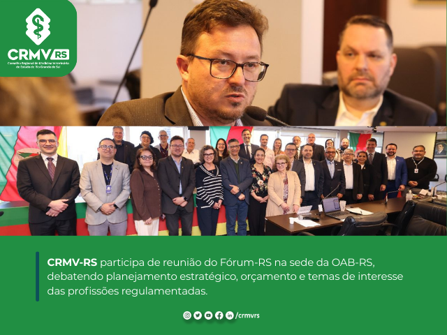 O encontro ocorreu na sede da OAB-RS e contou com a presença do presidente do CRMV-RS, Mauro Moreira, e do assessor técnico, José Pedro Soares Martins.