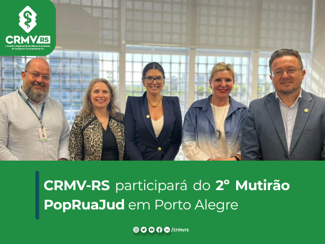 O Conselho Regional de Medicina Veterinária do Rio Grande do Sul (CRMV-RS) estará presente na segunda edição do Mutirão PopRuaJud/RS, que acontece no dia 12 de dezembro, das 10h às 17h, no Largo Zumbi dos Palmares (Av. Loureiro da Silva, 730), no bairro Cidade Baixa, em Porto Alegre. A ação integra uma iniciativa nacional coordenada pelo Conselho Nacional de Justiça (CNJ), voltada à promoção de cidadania e acesso à Justiça para pessoas em situação de rua.