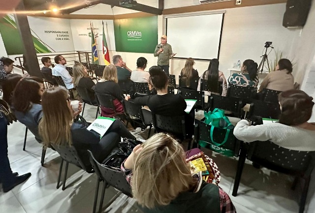 Os estudantes da disciplina de "Legislação e Atuação Profissional Veterinária" da Faculdade de Medicina Veterinária da FEEVALE assistiram palestra do Conselho Regional de Medicina Veterinária do Rio Grande do Sul (CRMV-RS) ministrada pelo assessor técnico da autarquia ...
