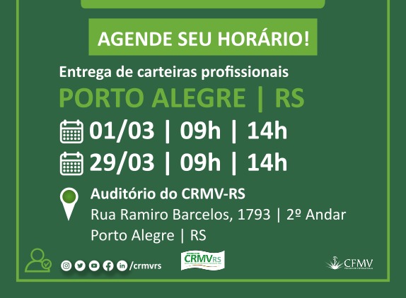 O Conselho Regional de Medicina Veterinária do Rio Grande do Sul (CRMV-RS) realizará, no dia 29 de março, mais uma solenidade de entrega de carteiras profissionais ...