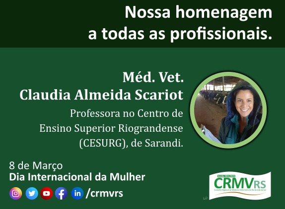 CRMV-RS presta série de homenagens a médicas veterinárias e zootecnistas durante o mês em que se comemora o Dia Internacional da Mulher ...