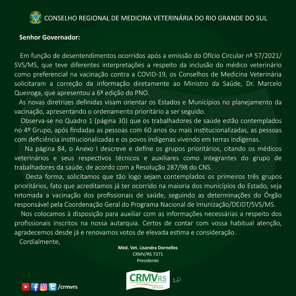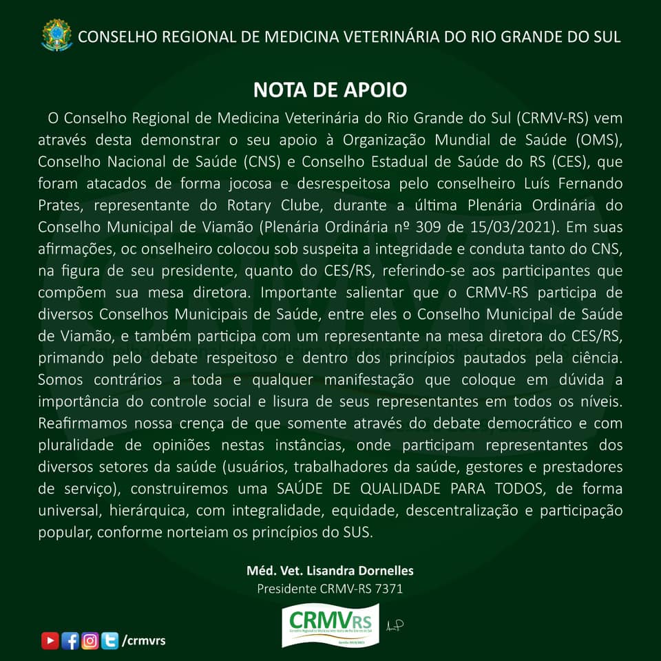 É com profundo pesar que o Conselho Regional de Medicina Veterinária do Rio Grande do Sul (CRMV-RS) lamenta o falecimento do colega Volnei Afonso Merino vítima de complicações causadas pelo coronavírus ...