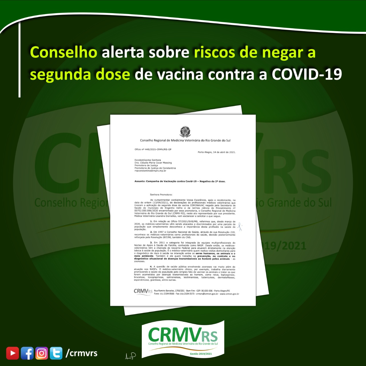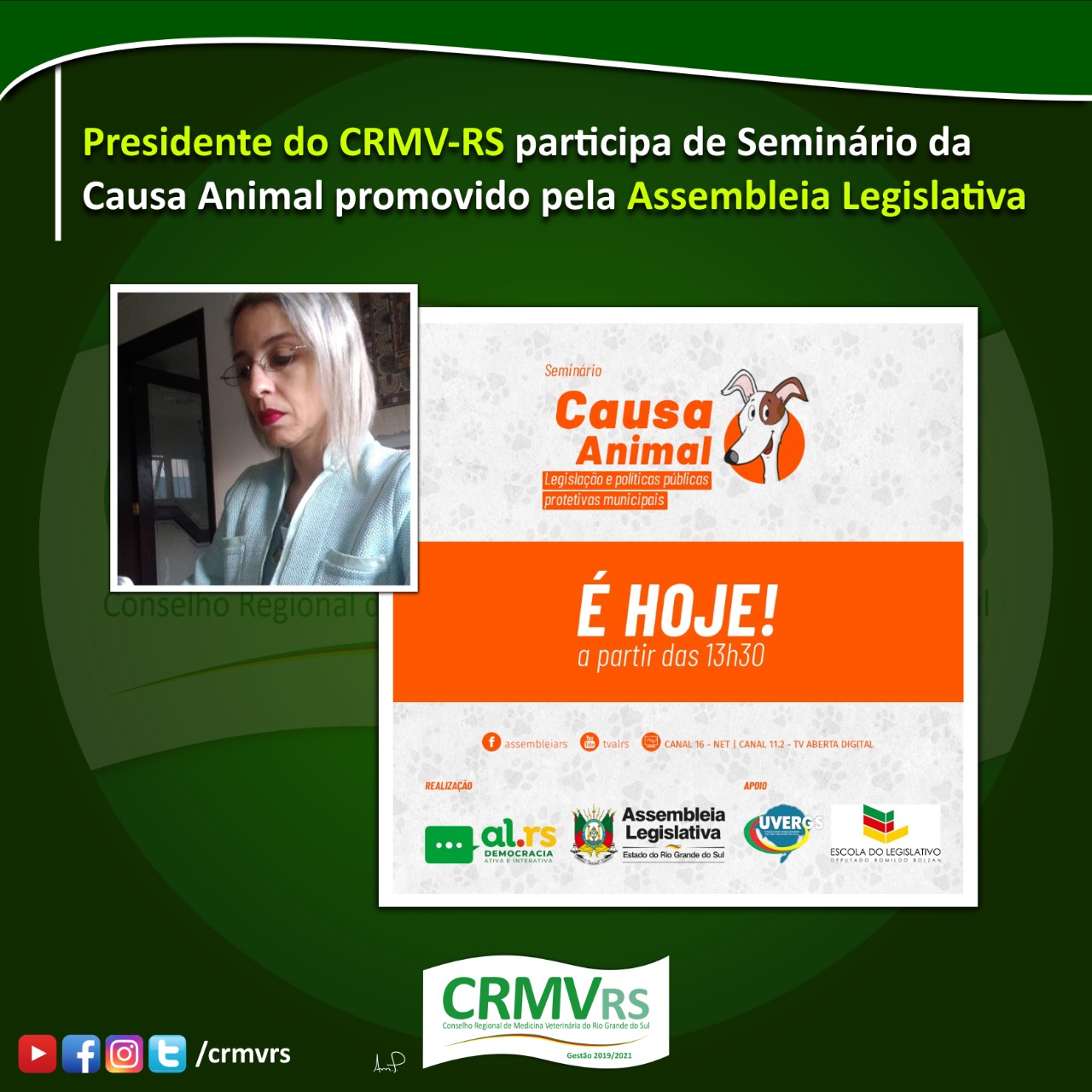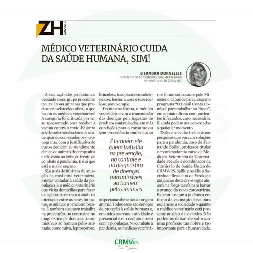 A vice-presidente do CRMV-RS, zootecnista Angélica Pinho, passou a integrar a Câmara Técnica de Zootecnia do Conselho Federal de Medicina Veterinária (CFMV) a partir desta semana ...