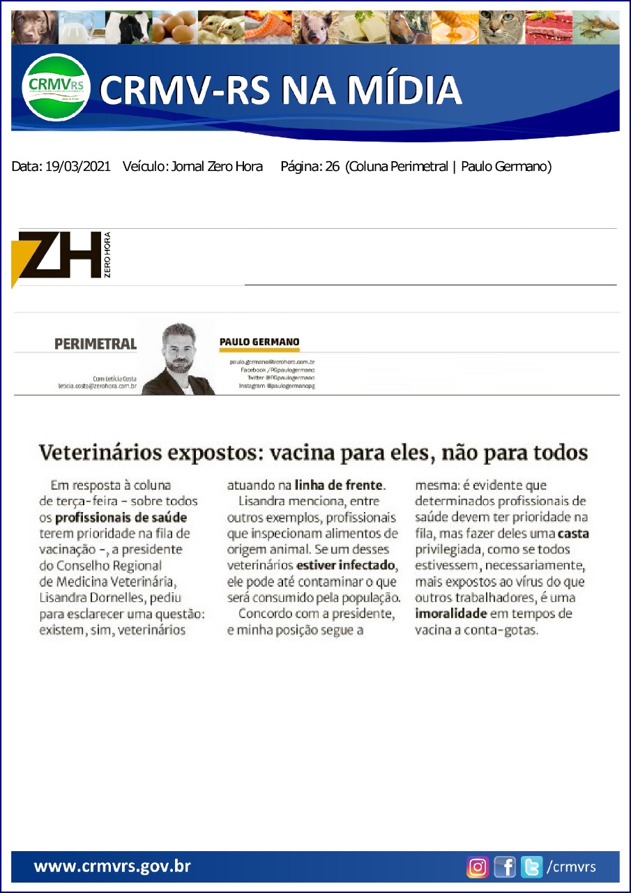 Esclarecimentos sobre a vacinação de médicos veterinários em Porto Alegre e restante do Estado