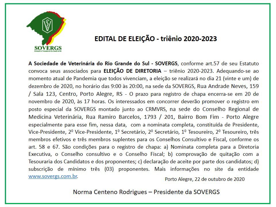O Conselho Regional de Medicina Veterinária do Rio Grande do Sul (CRMV-RS) esteve nesta segunda-feira (23) no Conselho Federal de Medicina Veterinária (CFMV), em Brasília, para a eleição da diretoria que comandará a autarquia nos próximos três anos ...