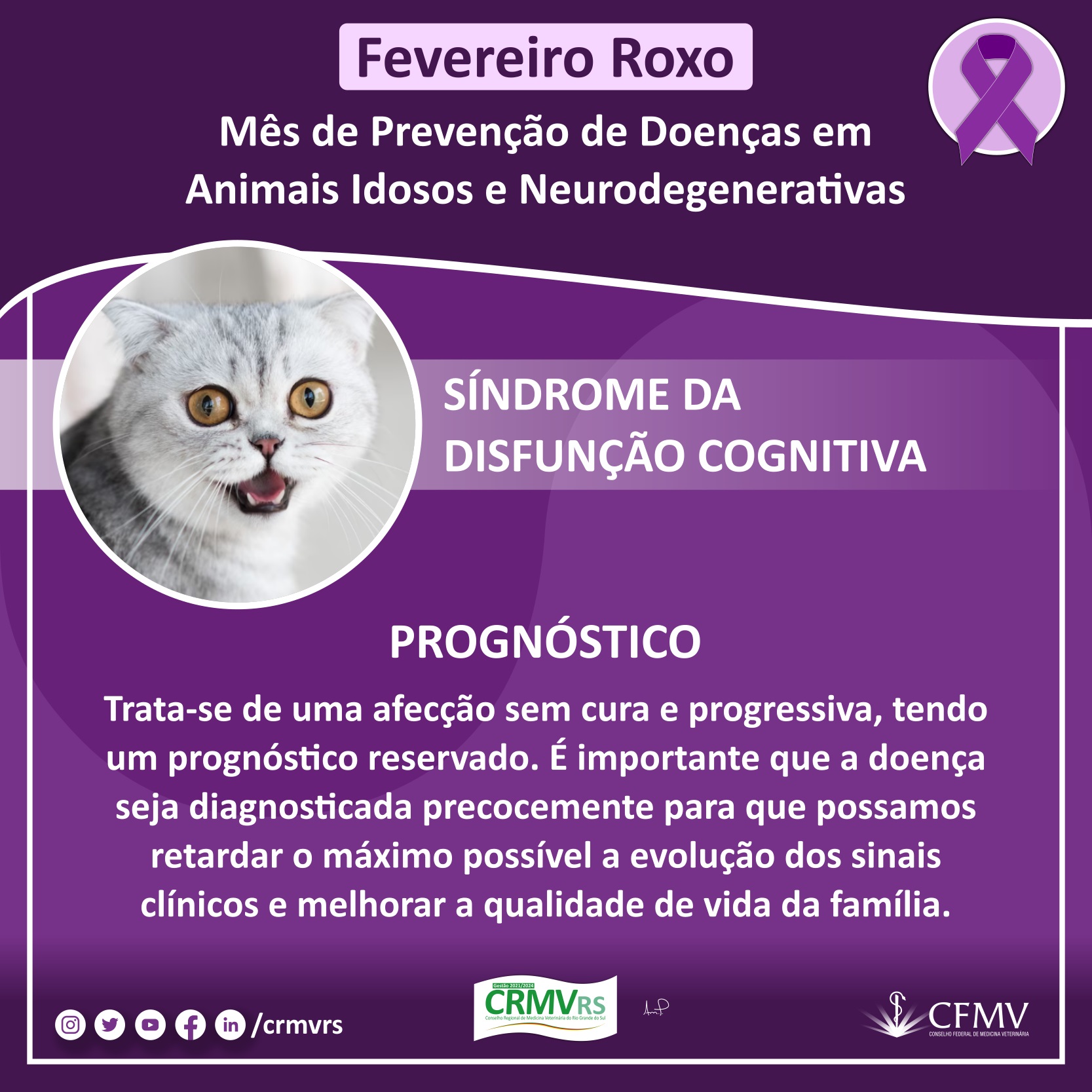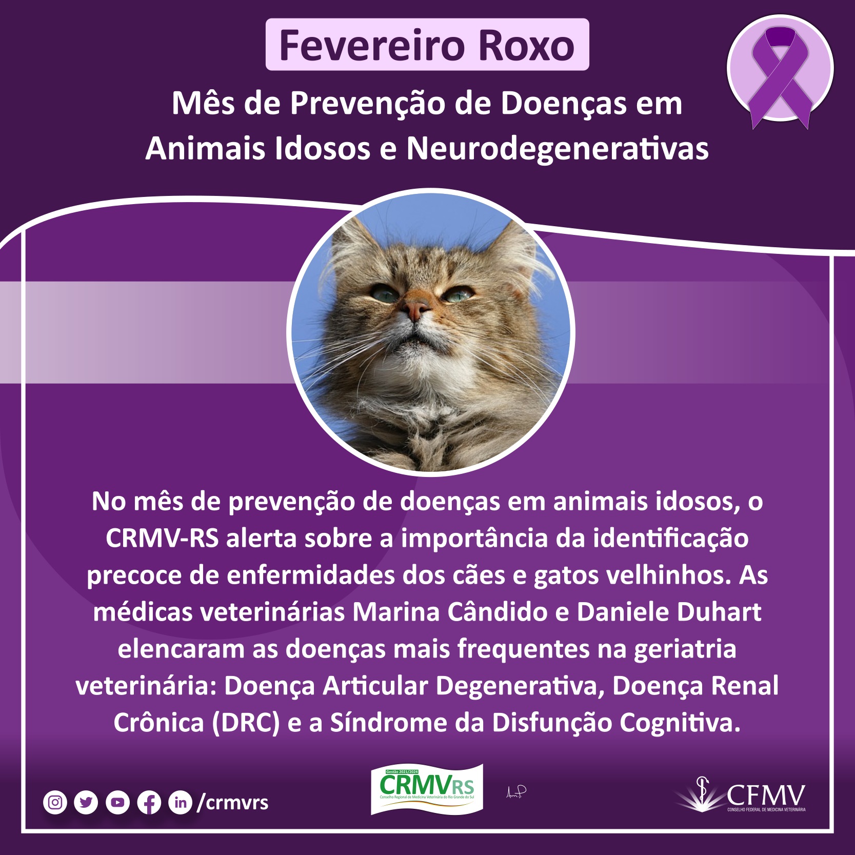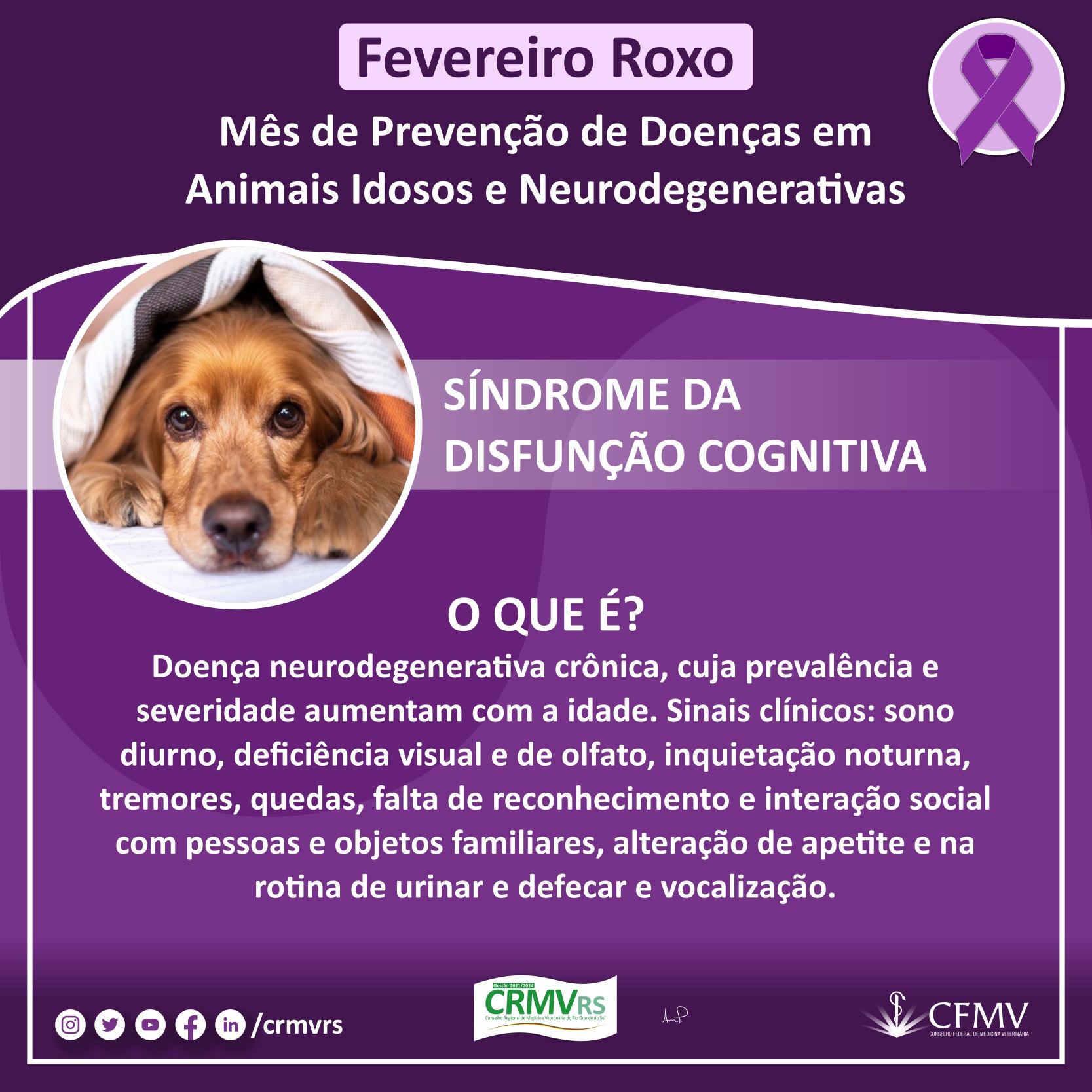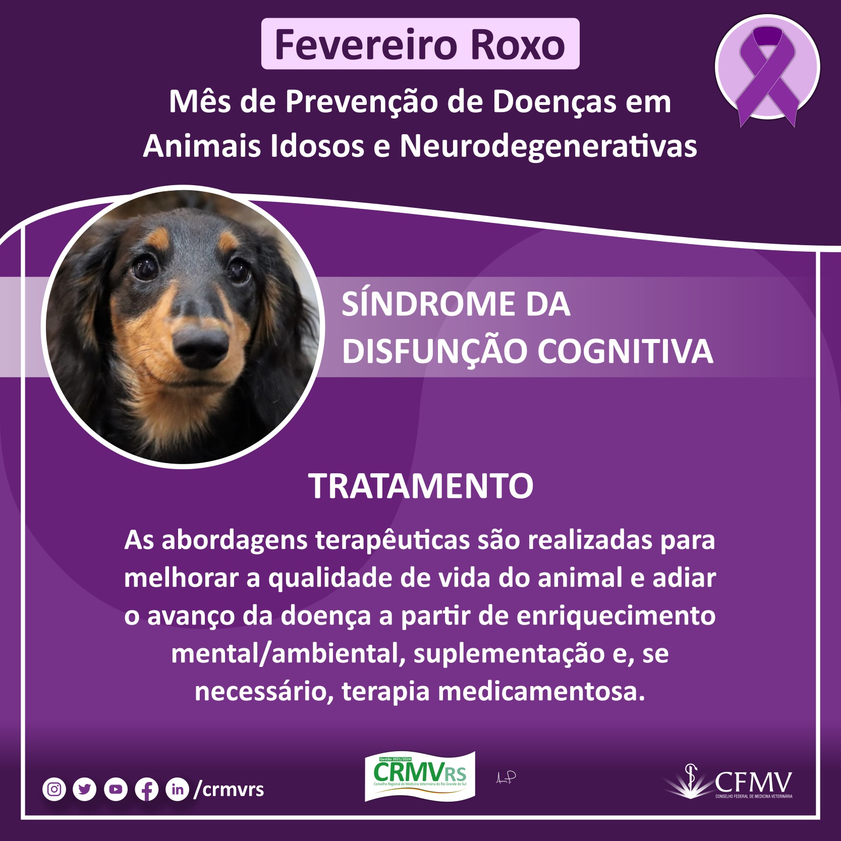 Campanha Fevereiro Roxo - Mês de prevenção de doenças em animais idosos e neurodegenerativas