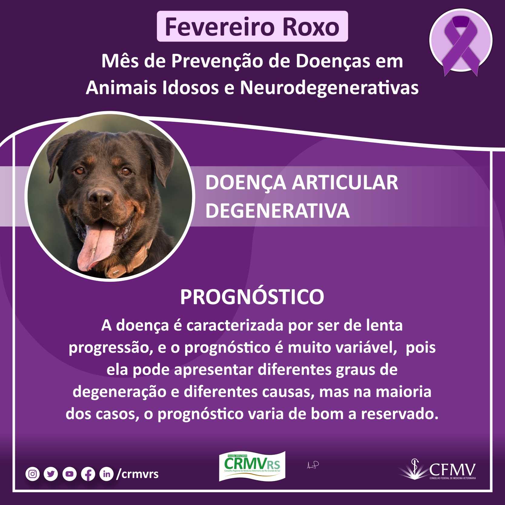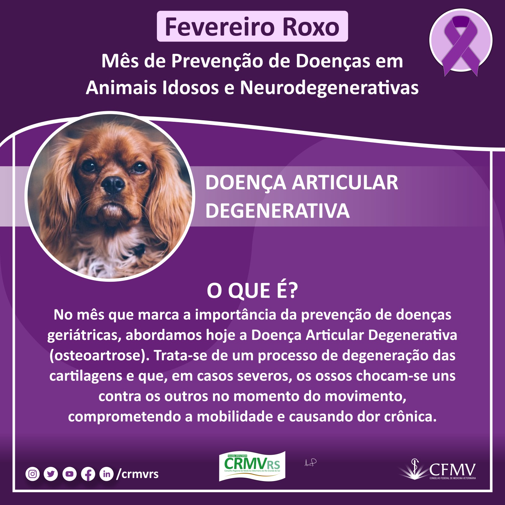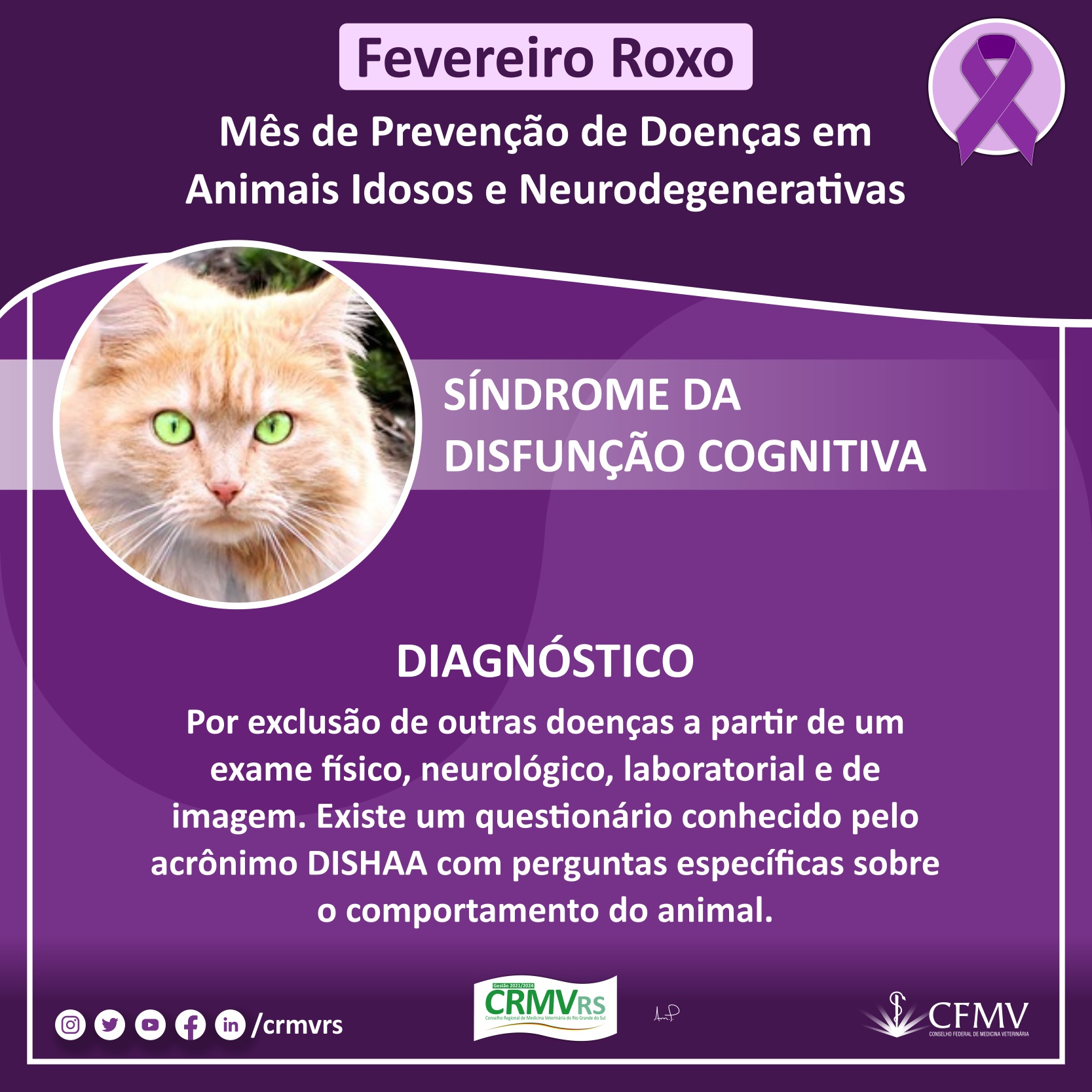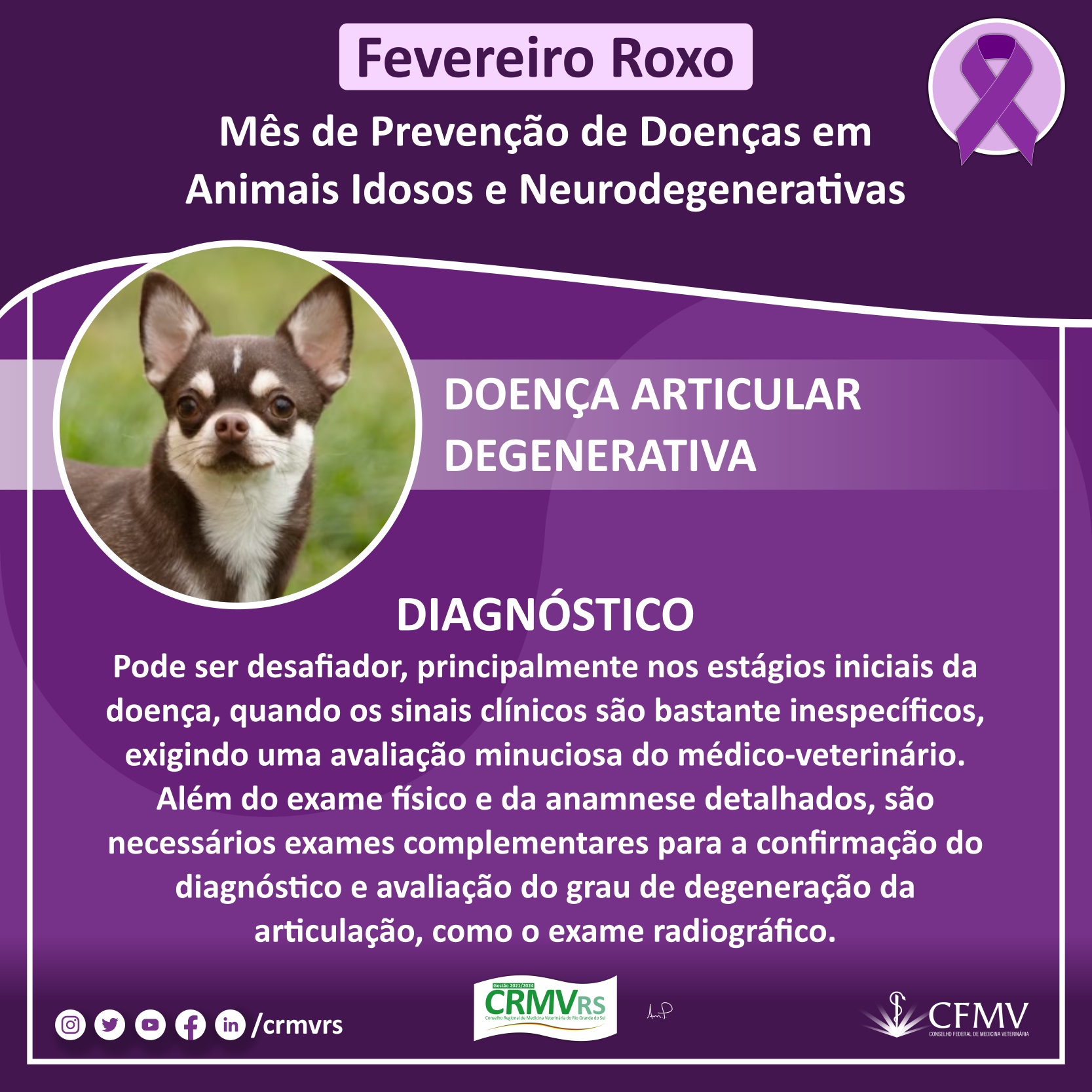 Campanha Fevereiro Roxo - Mês de prevenção de doenças em animais idosos e neurodegenerativas