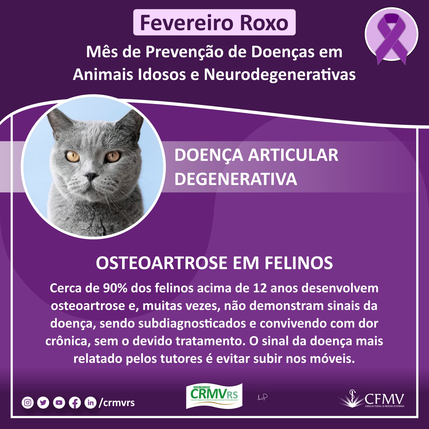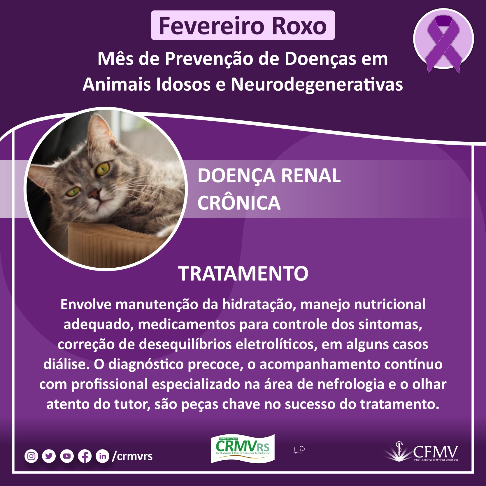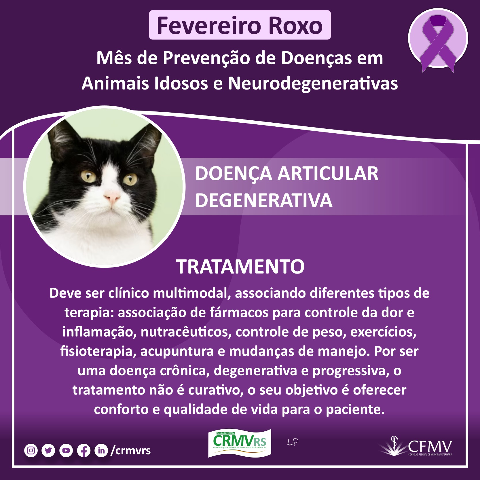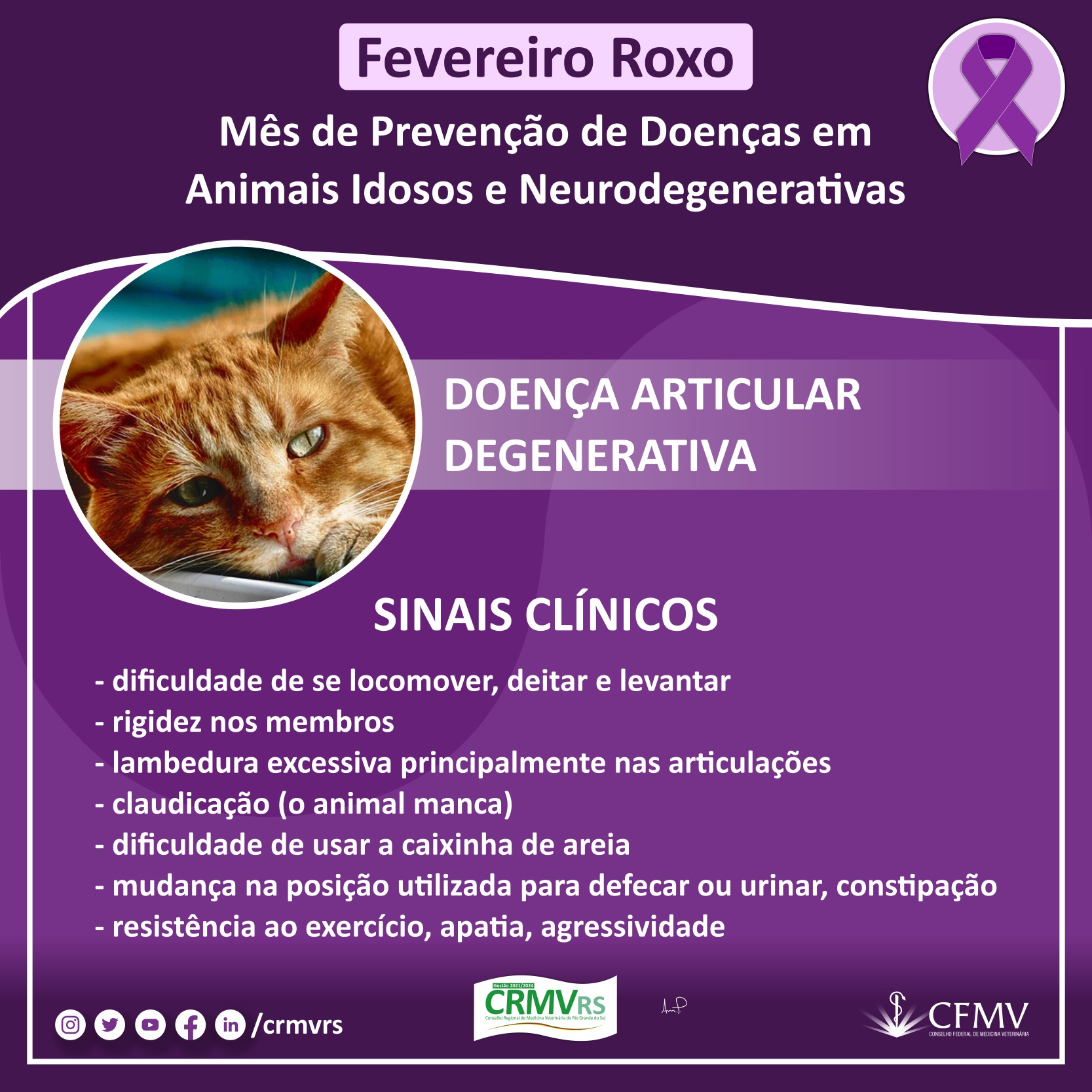 Campanha Fevereiro Roxo - Mês de prevenção de doenças em animais idosos e neurodegenerativas