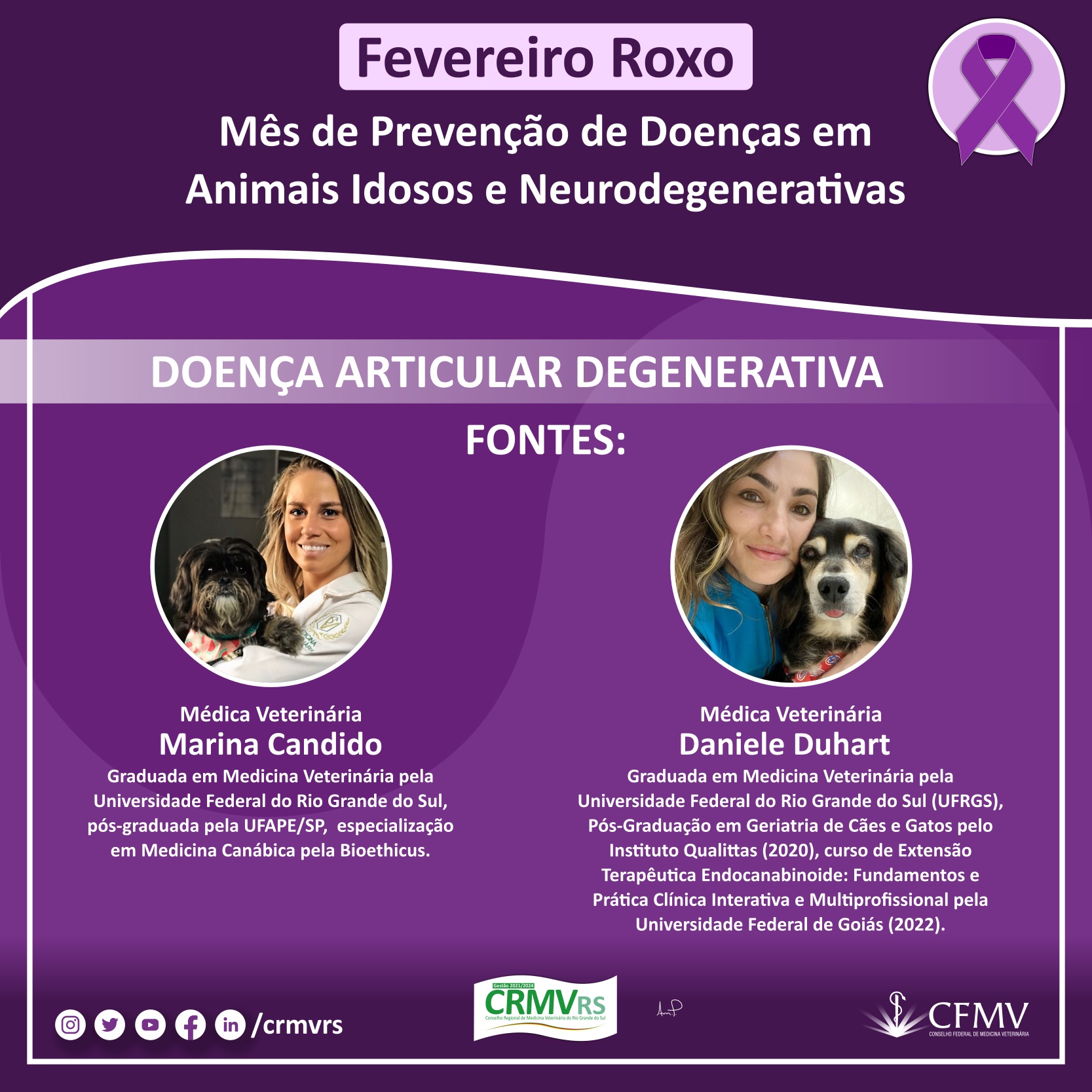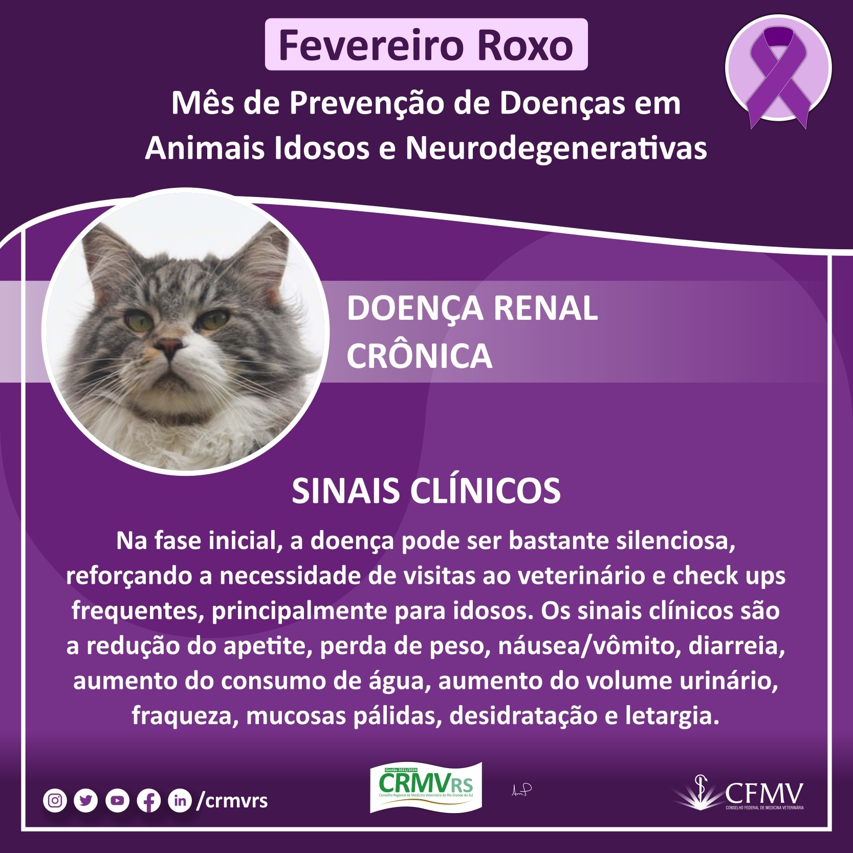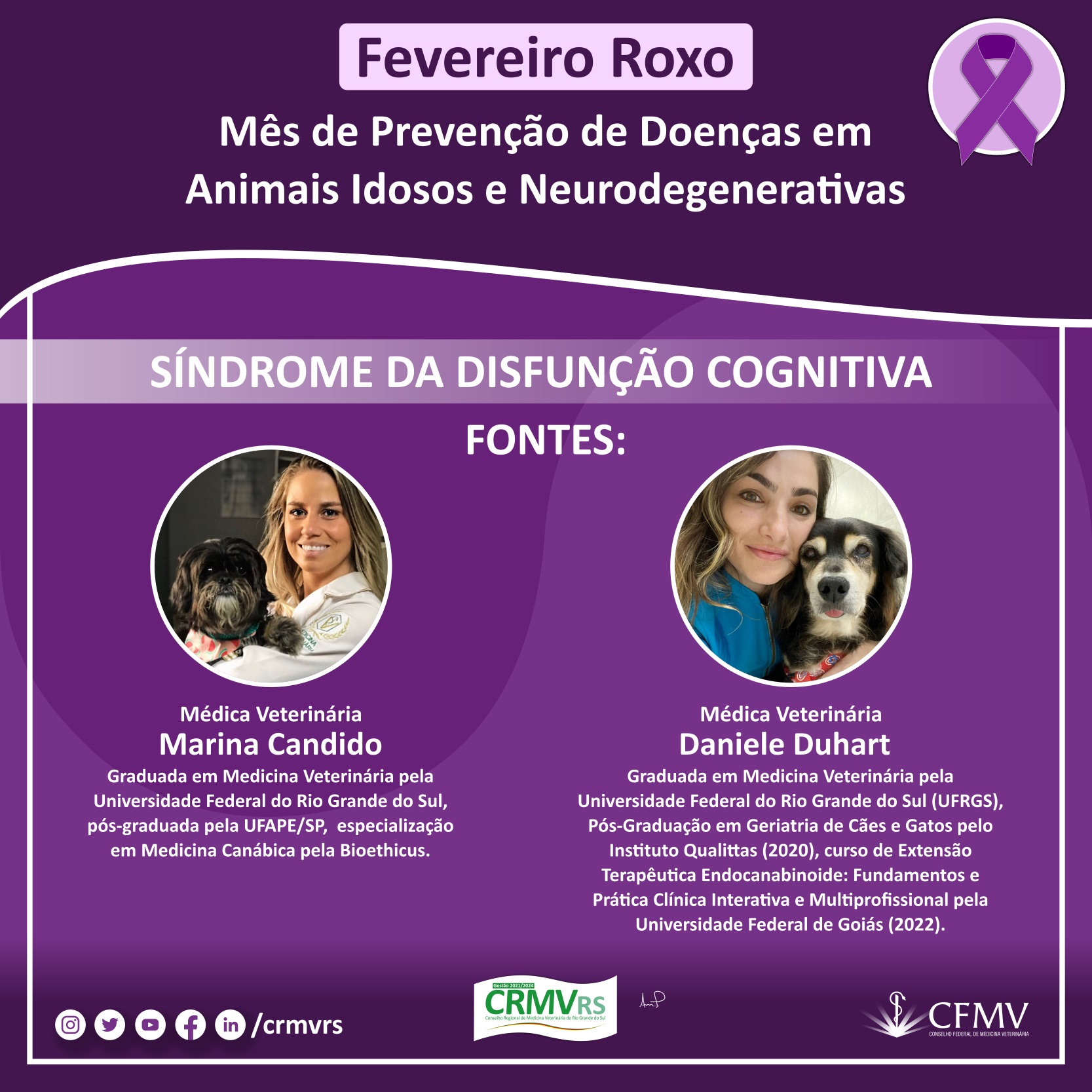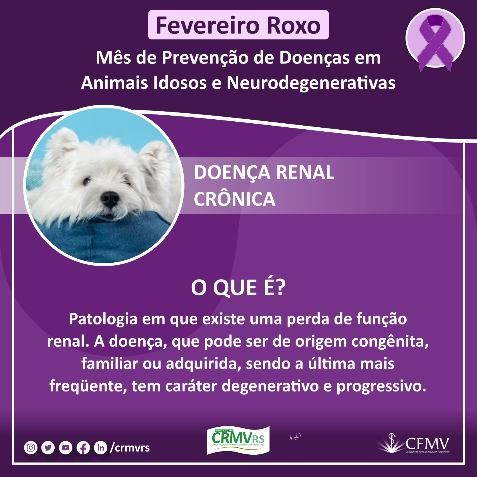 Campanha Fevereiro Roxo - Mês de prevenção de doenças em animais idosos e neurodegenerativas