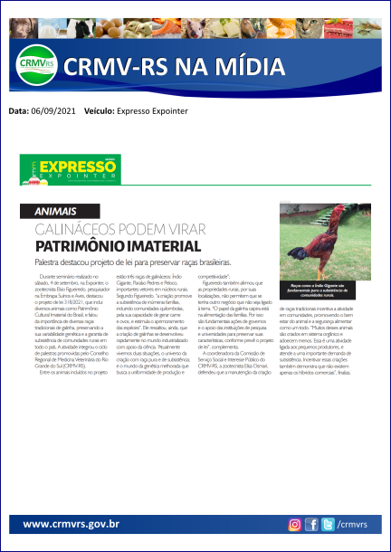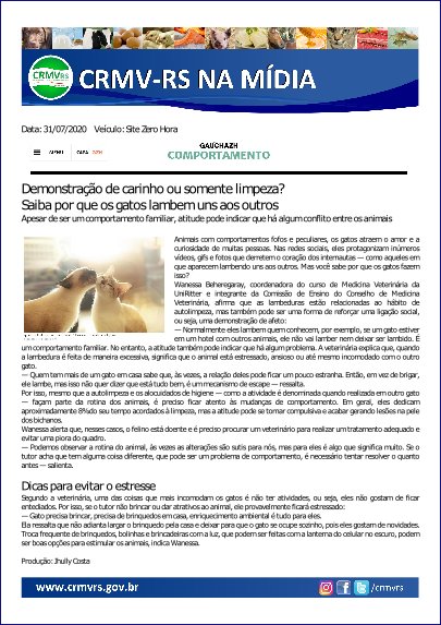 Data:24/07/2020 Pauta:Conselho formalizará documento com a Prefeitura de Porto Alegre para orientações de bem-estar animal Veículo: Site Revista Clínica Veterinária Editoria: Geral Página: Online