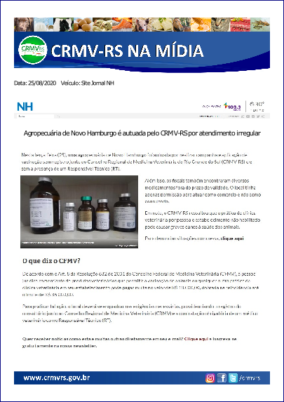 Data:25/08/2020 Pauta:Agropecuária de Novo Hamburgo é autuada Veículo: Site Jornal NH Editoria: Geral Página: Online