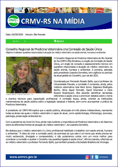 Data:04/09/2020 Pauta:CRMV-RS cria Comissão de Saúde Única Veículo: Site Feevale Editoria: Geral Página: Online