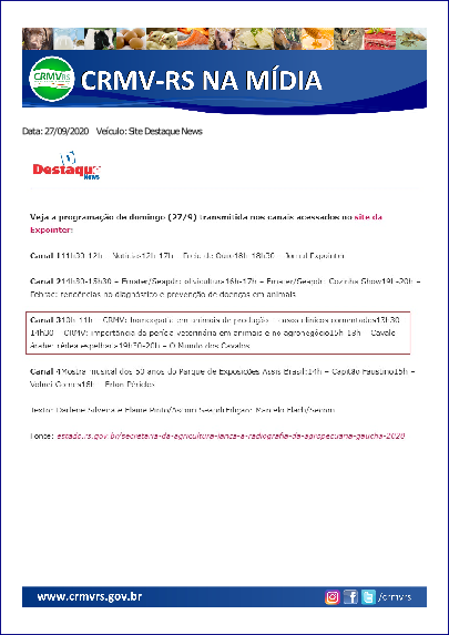 Data:27/09/2020 Pauta:Programação Expointer Digital Veículo: Site Destaque News Editoria: Geral Página: Online