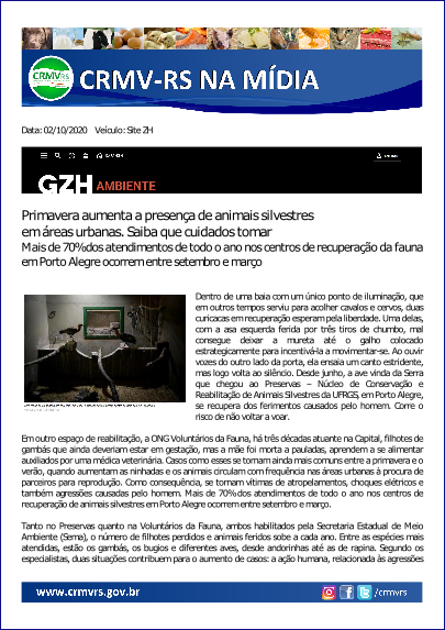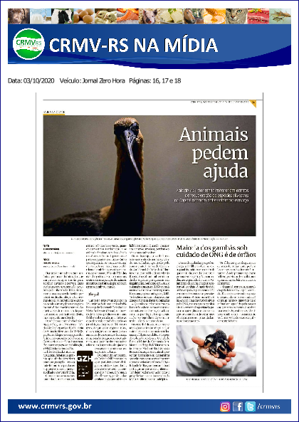 Data:03/10/2020 Pauta:Carinho longe da natureza - Animais Resgatados Veículo: Jornal Zero Hora Editoria: Geral Página: Online