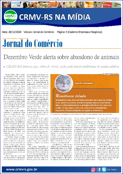 Data:28/12/2020 Pauta:Dezembro Verde alerta sobre abandono de animais Veículo: Jornal do Comércio Editoria: Caderno Empresas e Negócios Página: 5