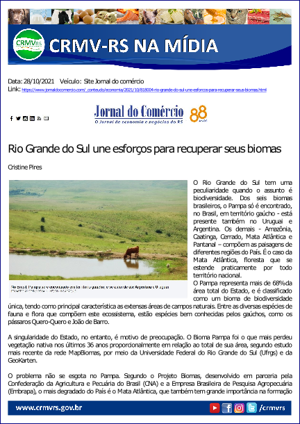 Data:28/10/2021 Pauta:Rio Grande do Sul une esforços para recuperar seus biomas Veículo: Site Jornal do Comércio Editoria: Geral Página: Online