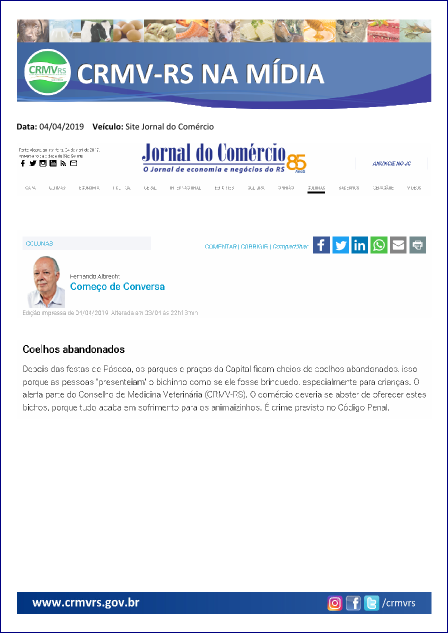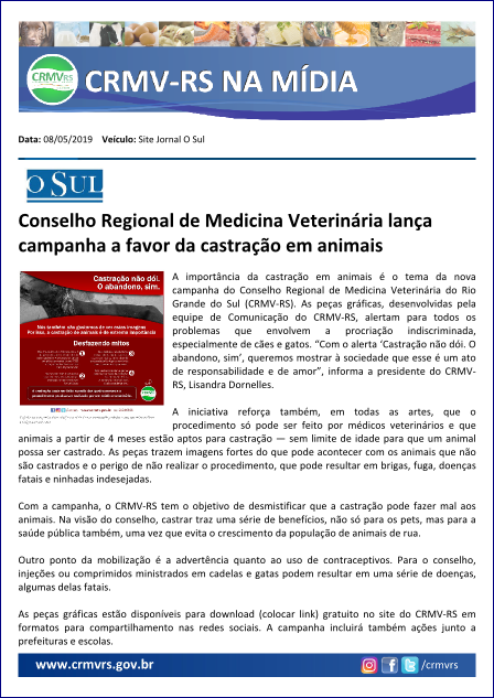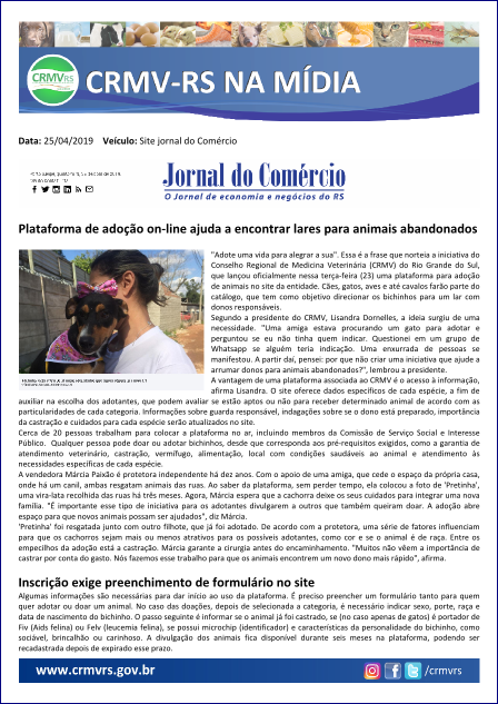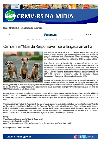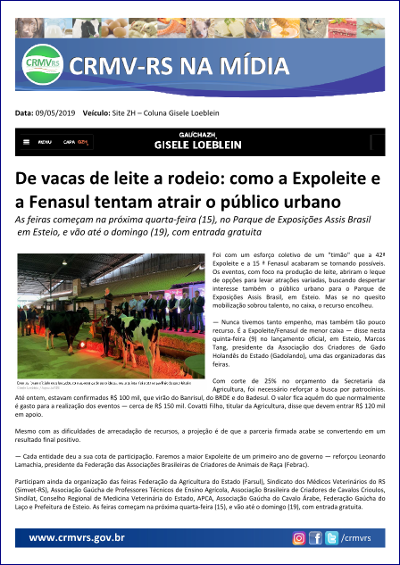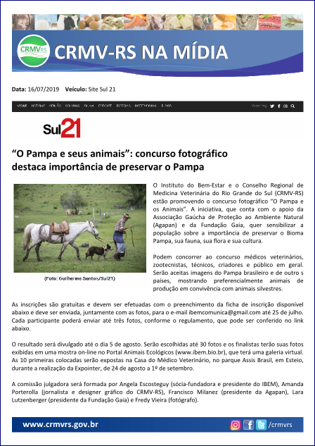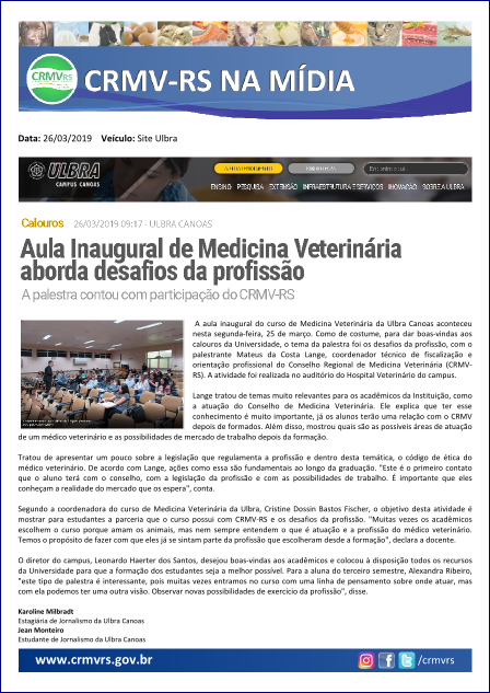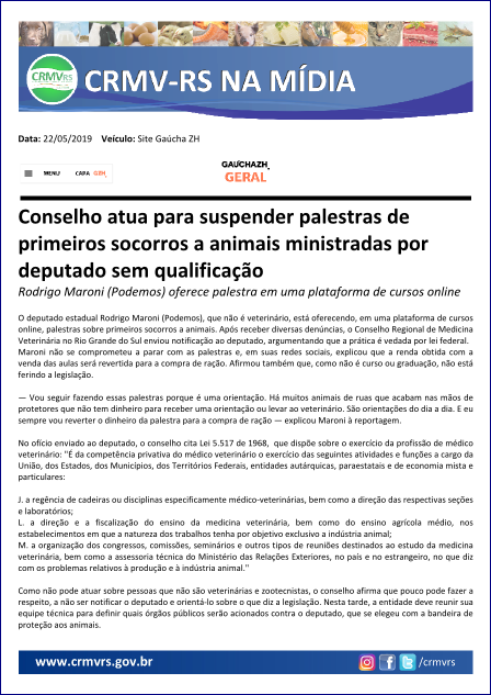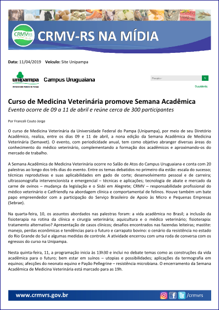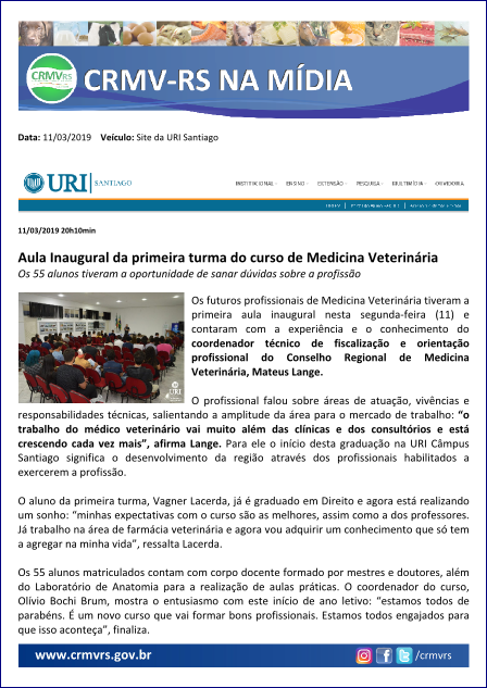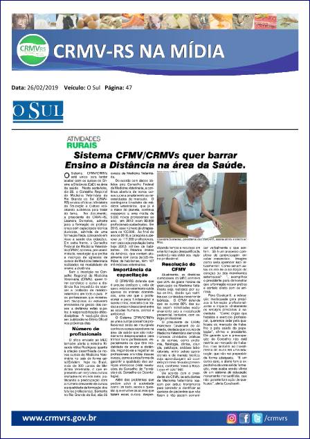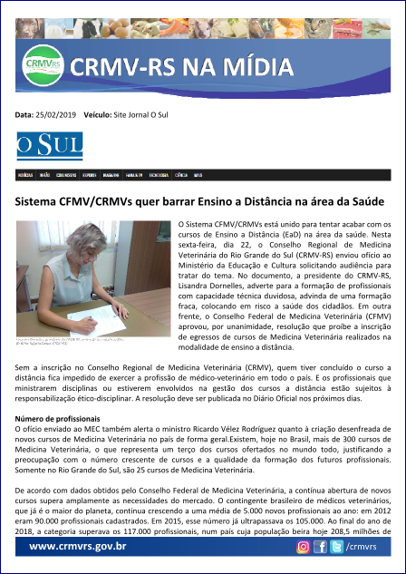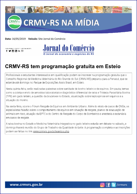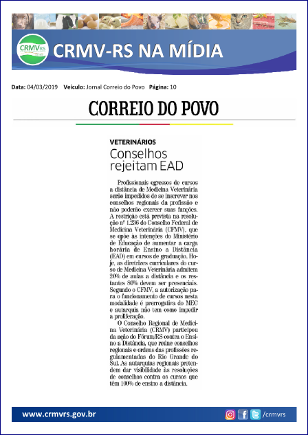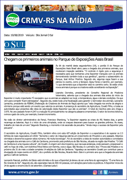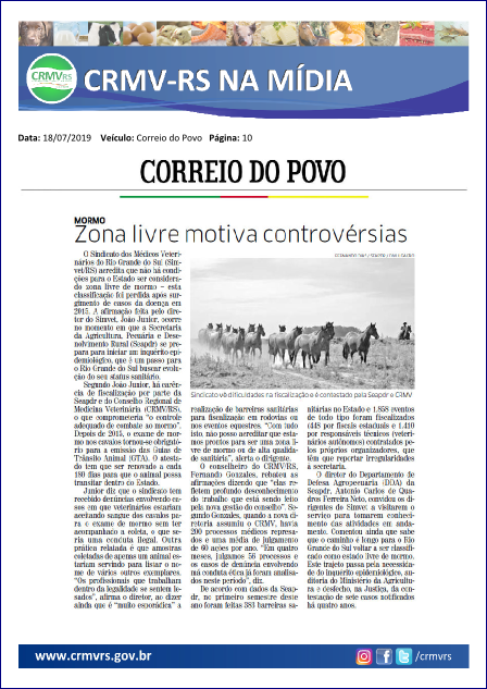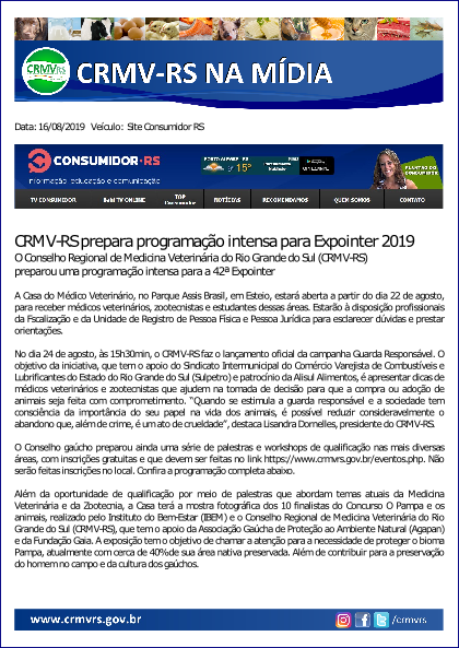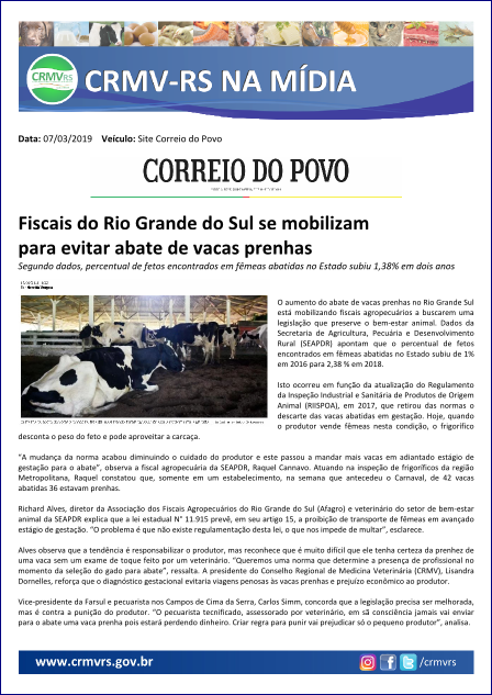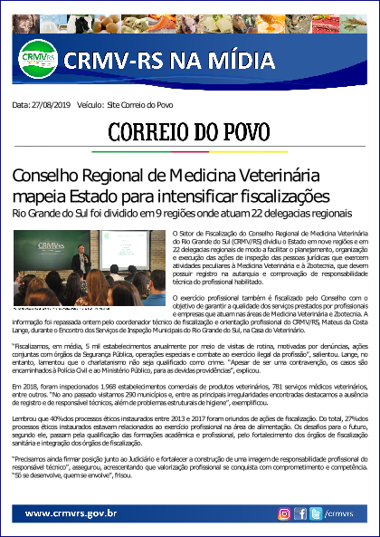 Data:27/08/2019 Pauta:Fiscalização CRMV-RS - Delegacias Regionais Veículo: Site Correio do Povo Editoria: Geral Página: Online