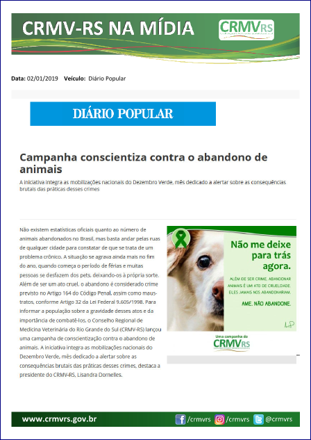 Pauta: Campanha Dezembro Verde - Não Abandone